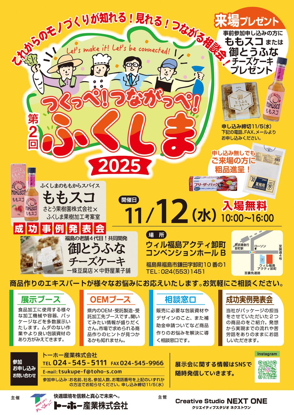 | お問い合わせ | 主催:トーホー産業株式会社 TEL 024-545-5111 FAX 024-545-9966 E-mail:tsukupe-f@toho-s.com |
