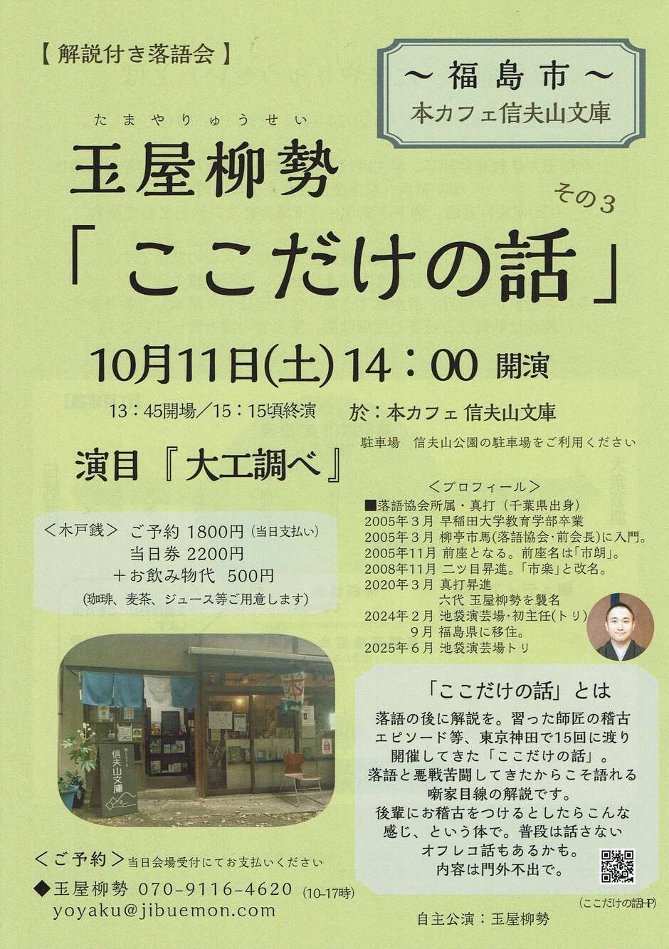 ■■解説付き落語会「ここだけの話」~福島市・本カフェ 信夫山文庫~
