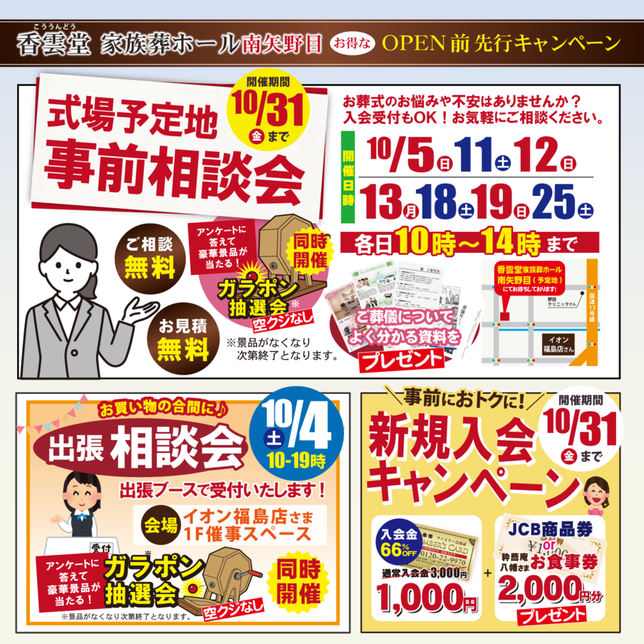 新規出店!香雲堂(こううんどう)家族葬ホール南矢野目 OPEN先行キャンペーン