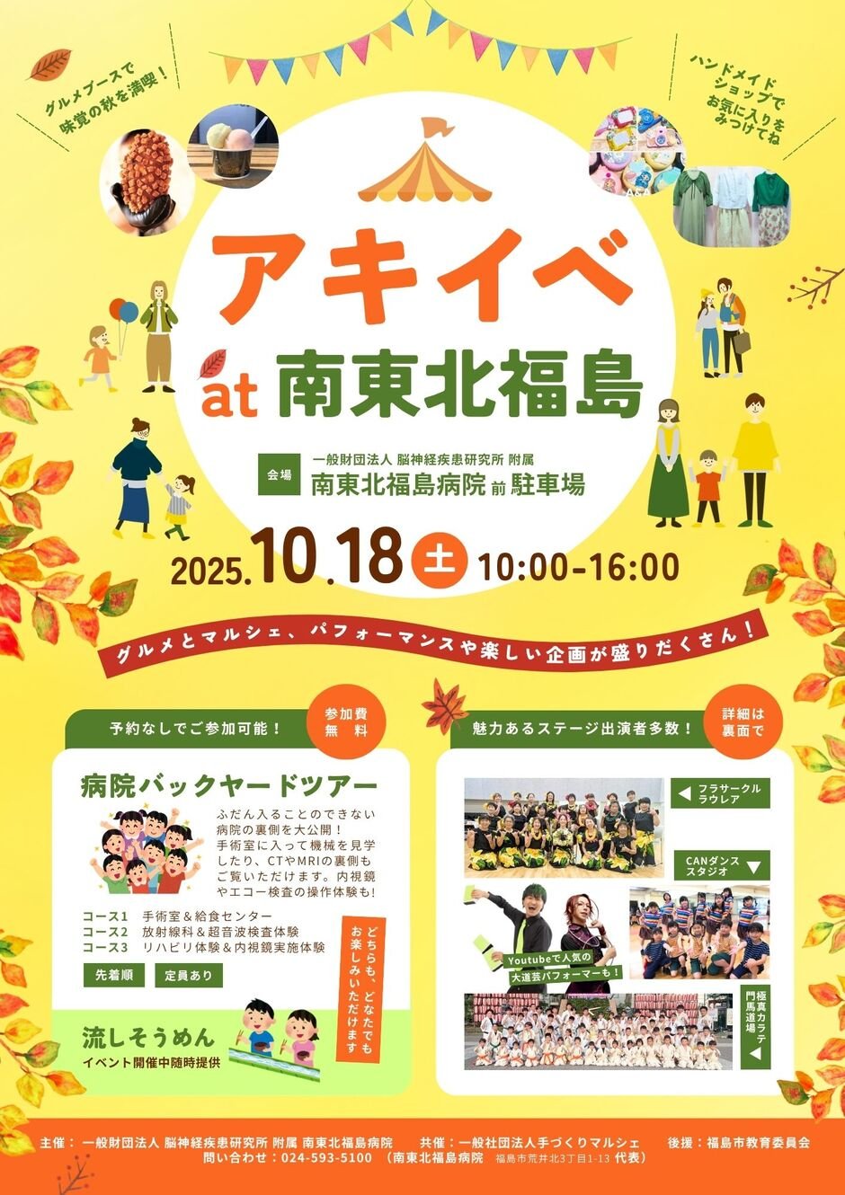 | お問い合わせ | 主催 一般財団法人 脳神経疾患研究所 附属 南東北福島病院 共催 一般社団法人手づくりマルシェ 後援 福島市 |
