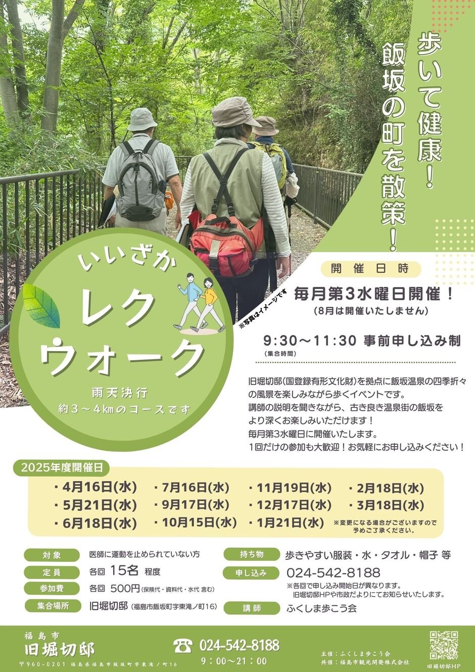 | お問い合わせ | 主催:ふくしま歩こう会 共催:福島市観光開発株式会社 ご予約:旧堀切邸☎024ー542ー8188 |