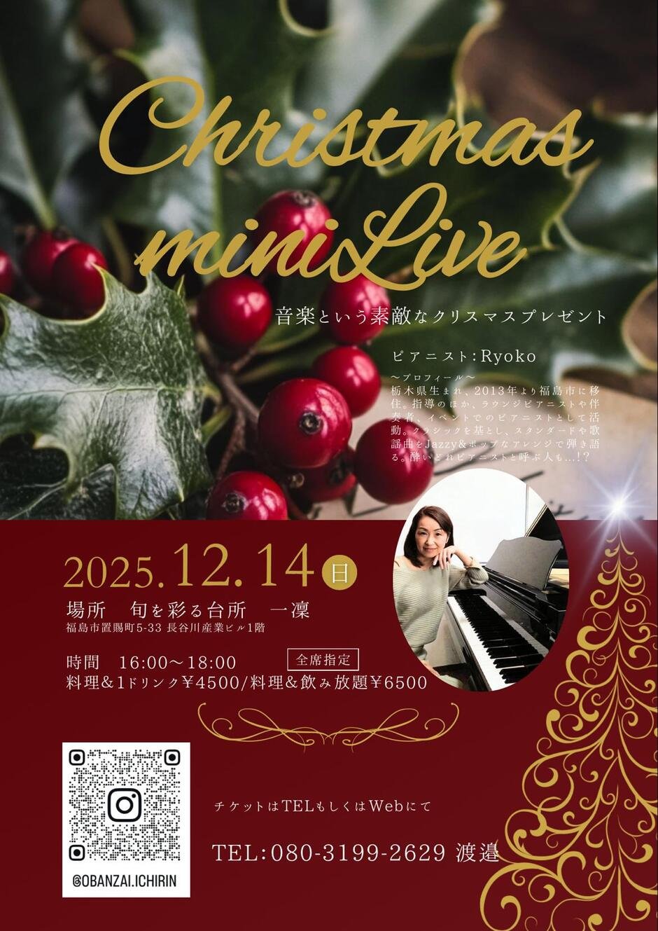 | 参加費 | 料金&1ドリンク ¥4,500 料金&飲み放題 ¥6,500 |