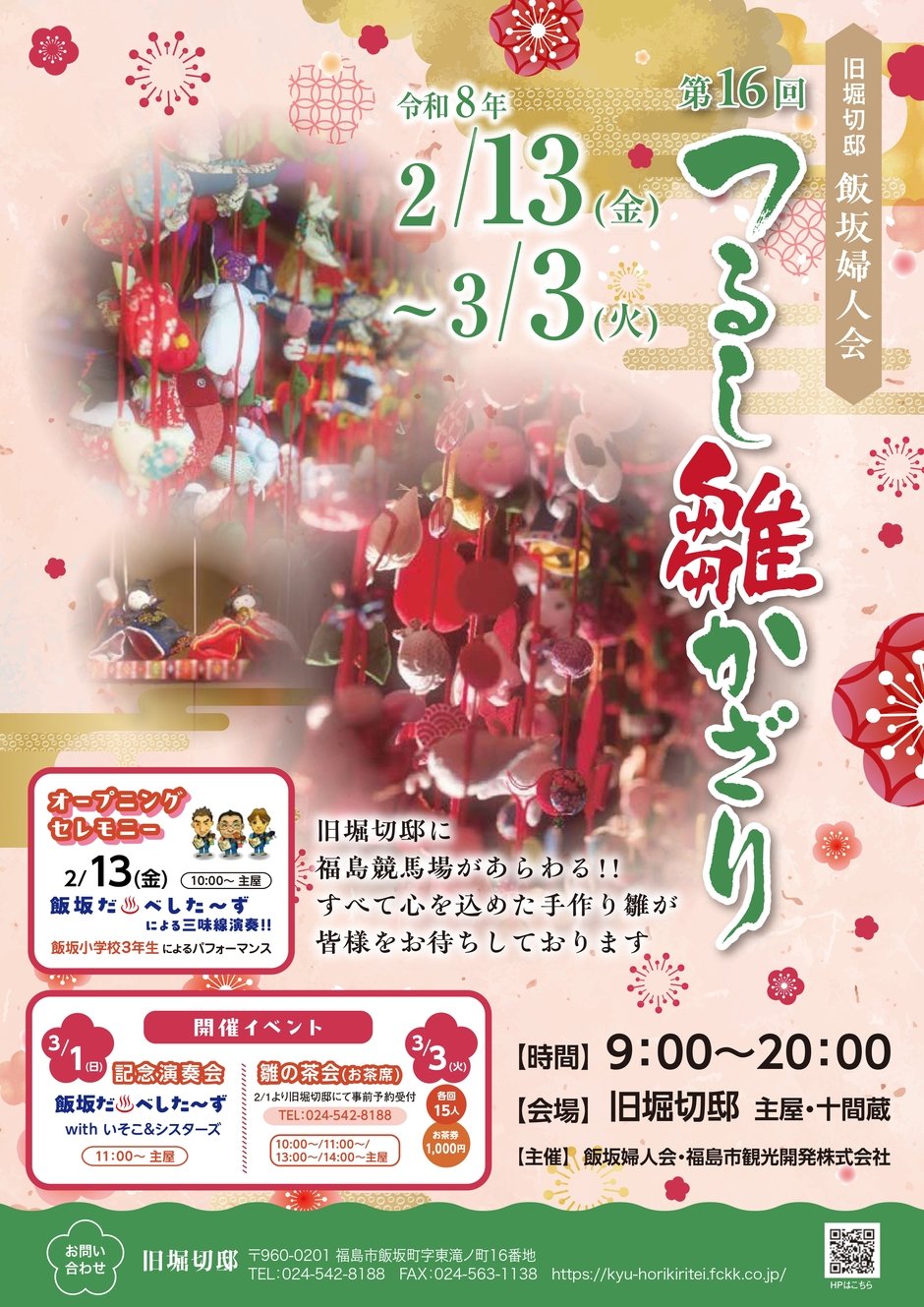 | お問い合わせ | 主催:飯坂婦人会 福島市観光開発株式会社(旧堀切邸) ☎024-542-8188 (旧堀切邸) |