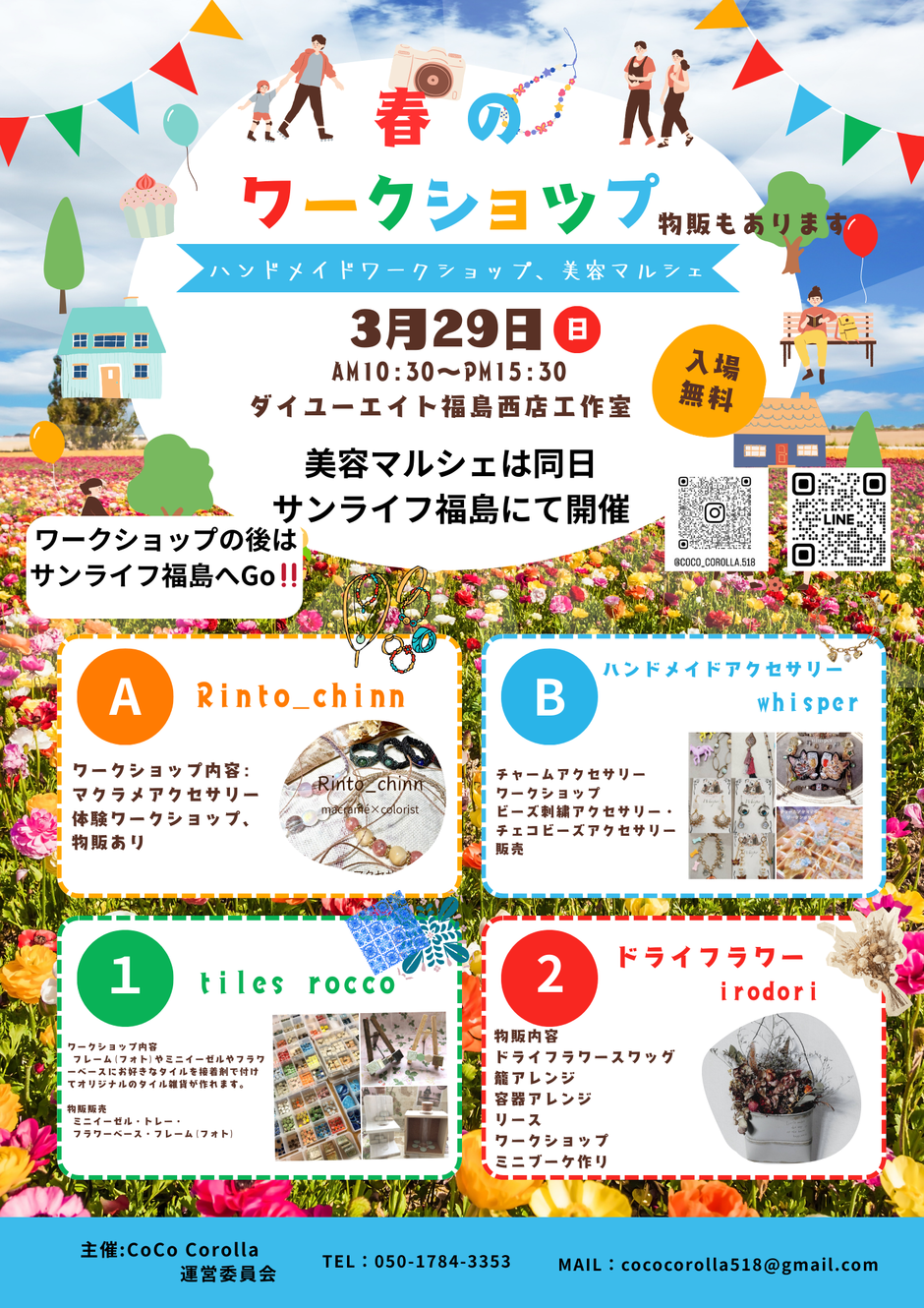 | お問い合わせ | 主催 CoCoCorolla運営委員会 メール cococorolla518@gmail.com 電話 050-1784-3353 |