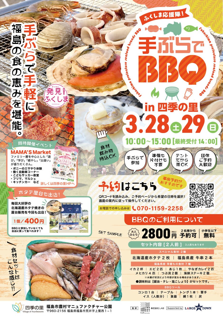 | 参加費 | 大人ひとり 2,800円 (2名様から予約可)|小学生以下無料 |