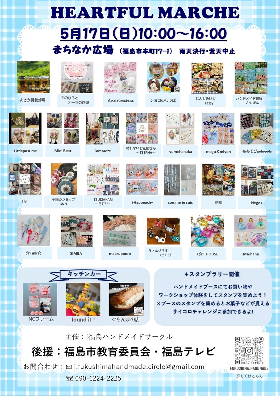 | お問い合わせ | お問合せ/090-6224-2225(i福島ハンドメイドサークル 佐藤) i.fukushimahandmade.circle@gmail.com |