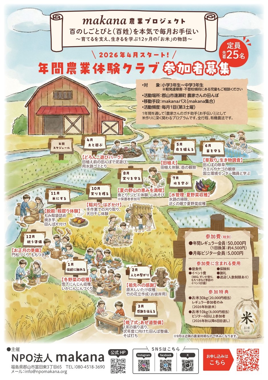 | 場所 | NPO法人makana:郡山市富田東3丁目65 & 郡山市逢瀬の田畑 |