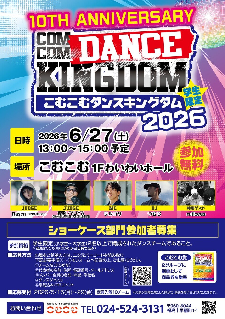 | お問い合わせ | 公益財団法人福島市振興公社 こむこむ 福島市早稲町1-1 電話 024-524-3131 |