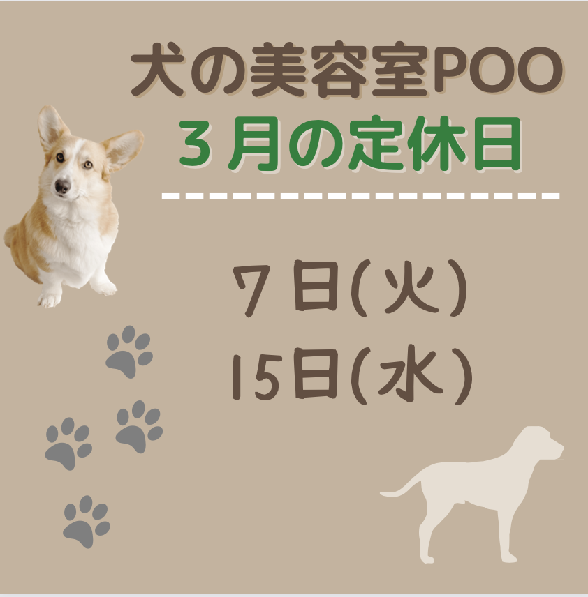犬の美容室POO🐶3月の定休日と求人募集のお知らせです