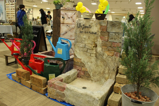 「泉エンジニアリング」さんの立水栓です。セメントと砂を混ぜ合わせて着色した物でレンガは使用してないそうです。庭にあったら実用性はもちろんガーデニングが楽しくなりそうな製品です。