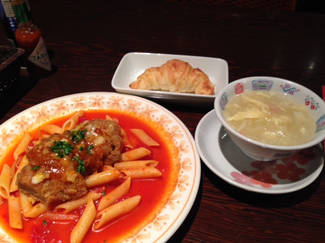 オーダーしたのは1日限定10食のチキンカツミートソースのチーズ焼きペンネ添えです。