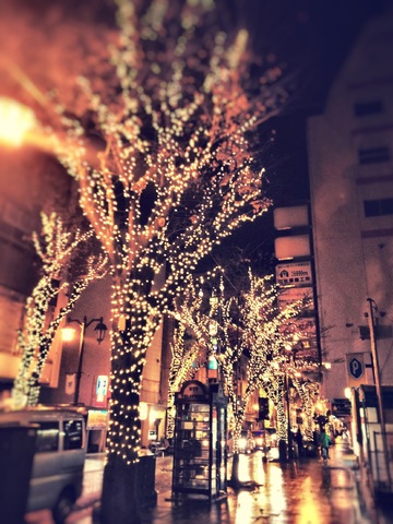 今日からパセオ通りのイルミネーションが始まりましたー!生憎の雨ですが、濡れた路面にイルミネーションの光が反射してこれはこれでとっても綺麗です!