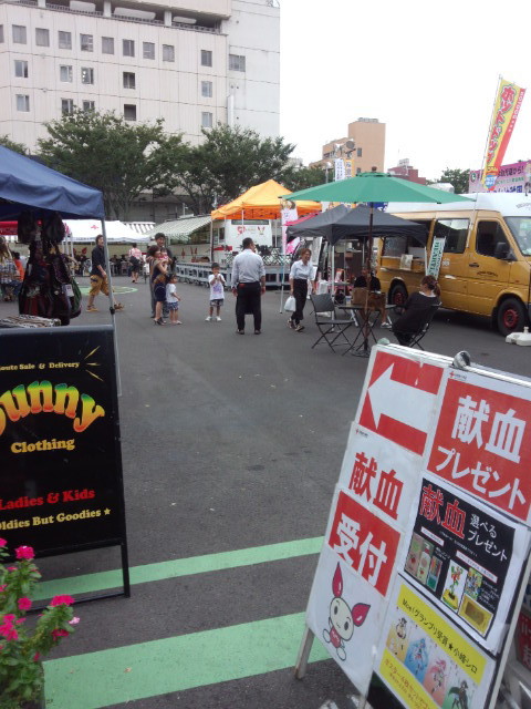 街中広場で県内の美味しいモノの出店が大集合してたので、中に入ってみたら献血促進のイベントでした。