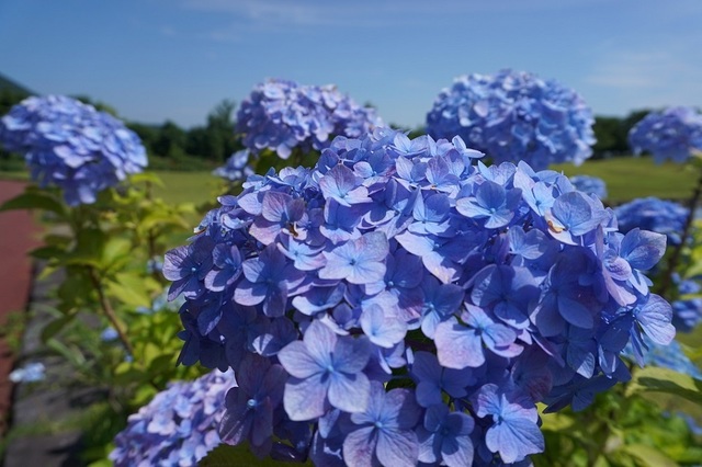 青い空と自然の緑をバックに咲くあじさいはとてもみずみずしくきれいでした。