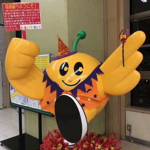 福島駅で見つけました。キビタンのハロウィンバージョン!!